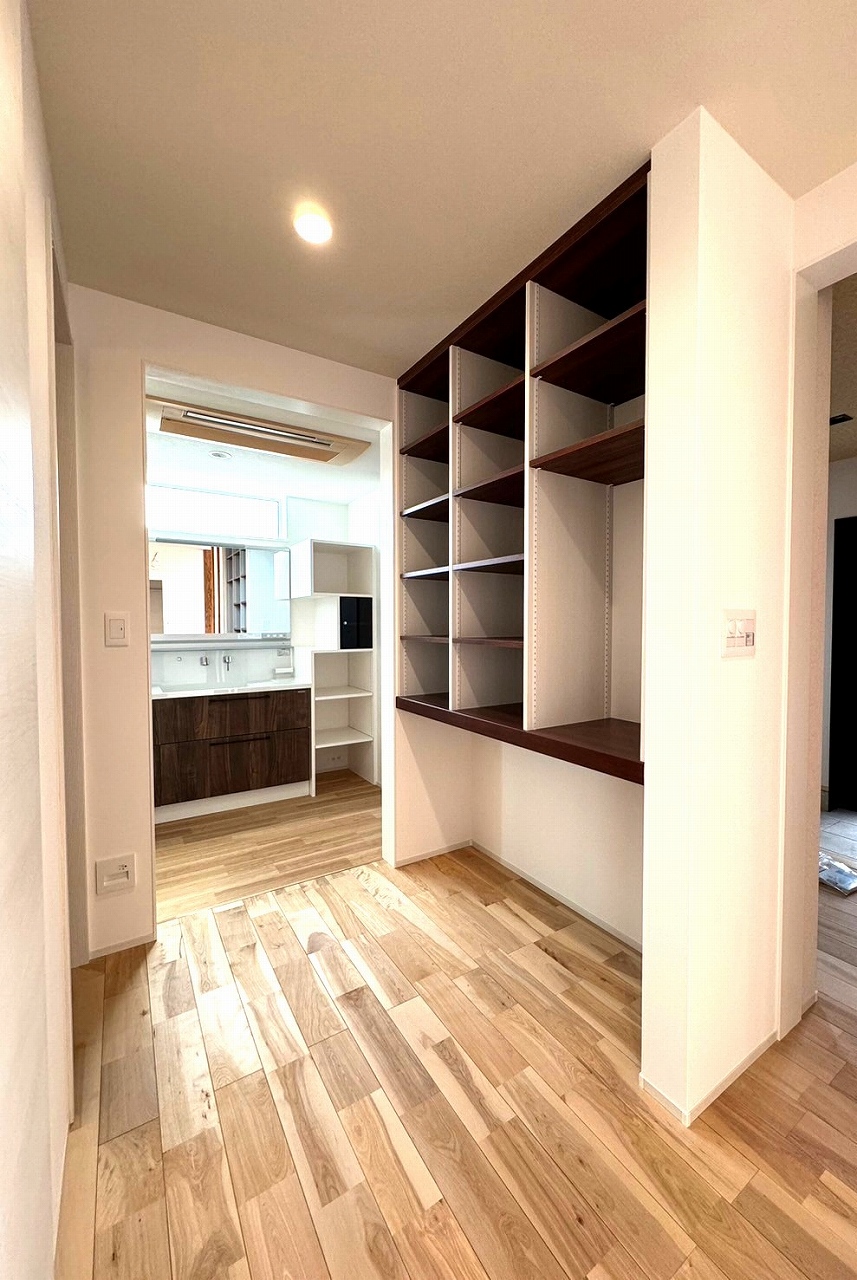 キッチン横には、 食品や日用品をストックするための 「パントリー」があります。 パン教室で使う材料も保存できるよう、 一般的なご家庭よりも広い 4帖 の広さを ご用意しました。 生活感の出てしまう 冷蔵庫 も、 パントリーに収納 してしまえば スッキリ! 玄関へと通じる扉もあるので、 お買い物後の収納作業もスムーズ に 行えます。 |