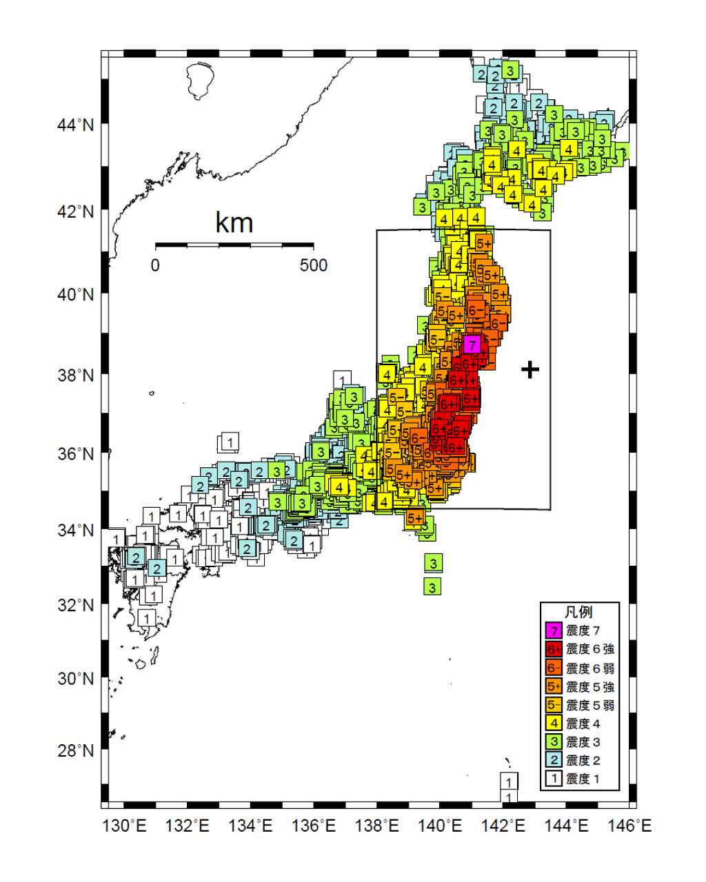 ※出典:気象庁 東日本大震災 震度分布図 |