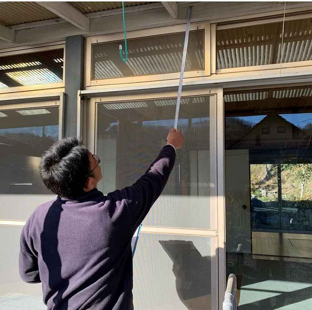 リフォーム前と窓の位置や大きさなどが変更となるため、間柱という柱と柱の間に建てる細い柱上の部材や窓を取り付ける下地材を施工しています。屋外と面している部分の工事のため、シートを外しながらの作業となります。
